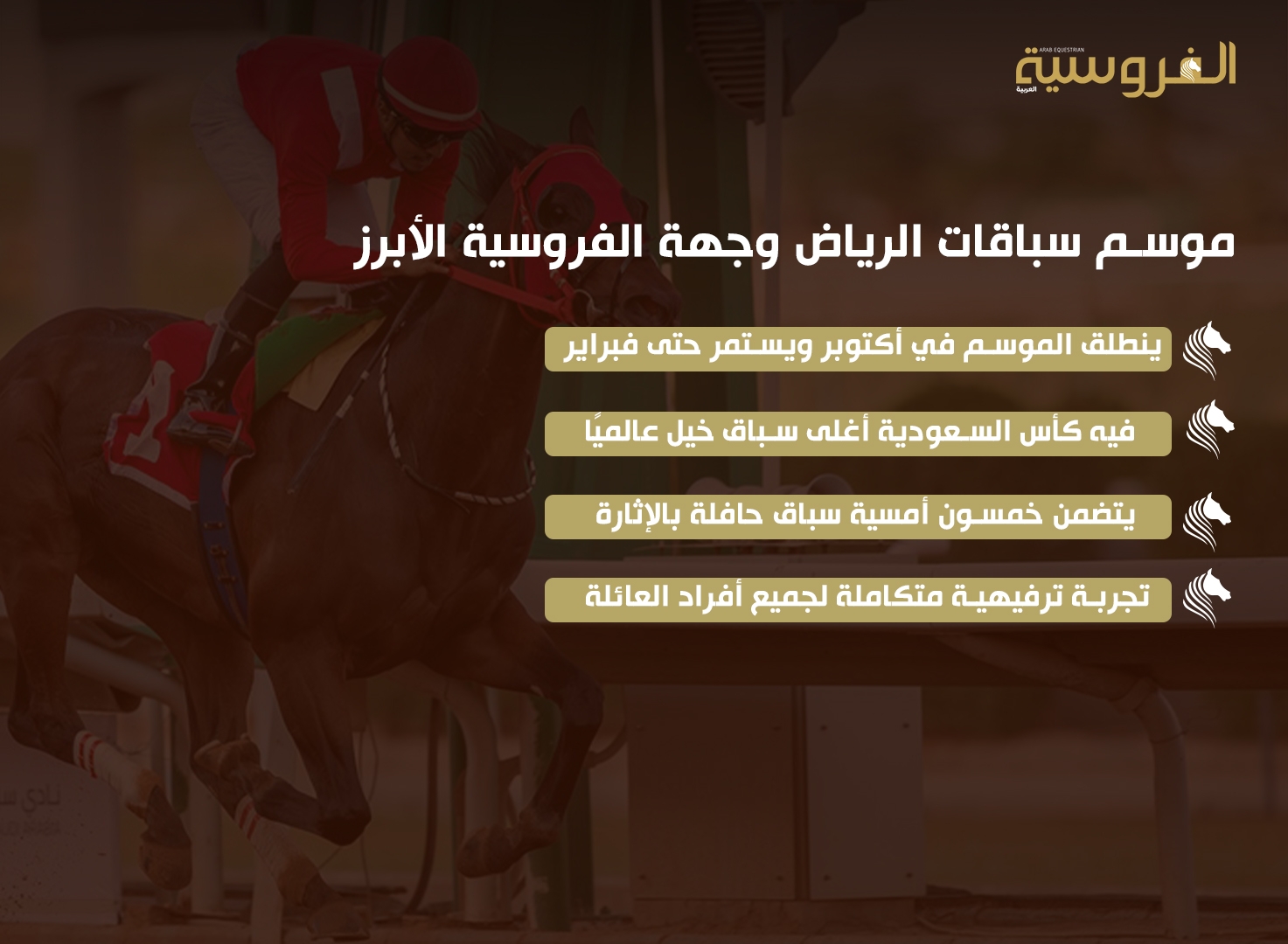 يعود موسم سباقات الرياض ليؤكد مكانته كأحد أبرز مواسم الفروسية في المنطقة. وذلك من خلال برنامج حافل يُقام في ميدان الملك عبدالعزيز للفروسية بالعاصمة الرياض. وينطلق الموسم رسميًا ليستمر حتى الختام الكبير في كأس السعودية يومي 13 و14 فبراير 2026. حيث يبدأ أغلى سباق للخيل في العالم بجوائز مالية تبلغ 20 مليون دولار أمريكي.